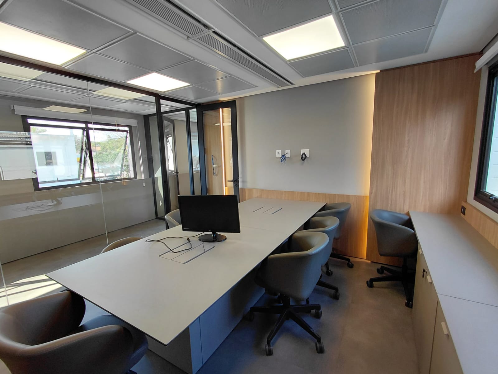 O projeto contemplou não apenas a atualização do edifício corporativo, mas também a implantação de um showroom técnico, onde os produtos da marca são apresentados em funcionamento real — uma vitrine de tecnologia e engenharia aplicada.